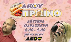 08:00-09:00: Άκου Πρωινό με τους Αντώνη Μπιδέρη Καλλιόπη Αραμπατζίδου